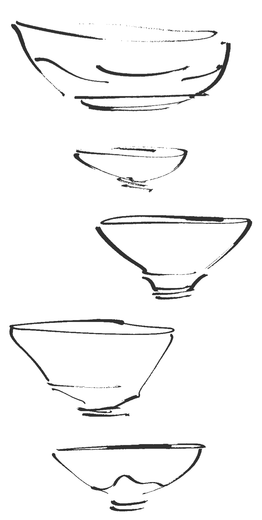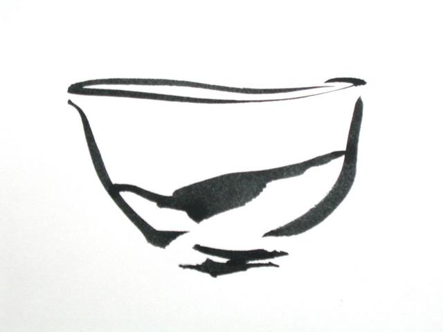 Brush sketches of a tea-bowl to accompany the essay, Wabi and the Chawan published by The Australian Ceramics Association in 2009 © Copyright.