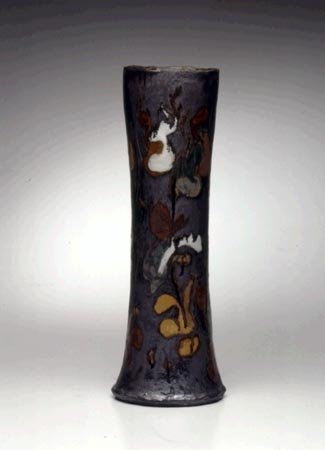 This tall vase, which, as I recall was approx 50 cms h. was made in 1990 at Summertown. It is stoneware and the multiple glaze decoration was surrounded by a manganese/copper vitreous engobe. Photo by Clayton Glen |