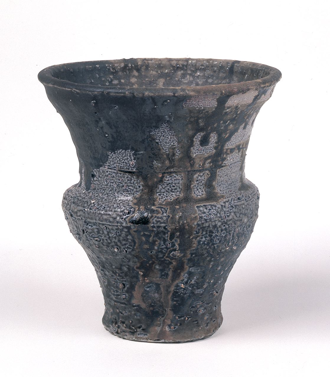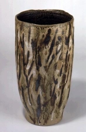 This 'Vase Form' was made in 1992 at Summertown in South Australia. It is stoneware, approx 30 cms h. this pot was fired on its side indicated by the flow of ash glaze. _Photo by Clayton Glen. |