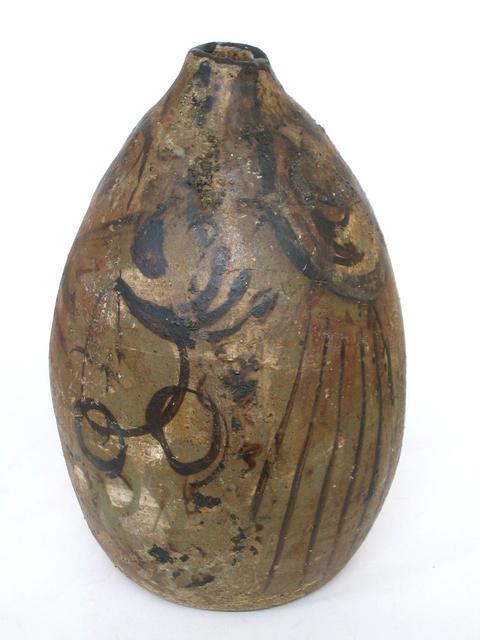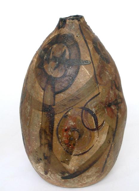 Occasionally it happens that one can't recall when, or where a pot was made. I know I called it 'Bush Patterns' and it was 48 cms high and that it has an over-glaze 'leaf' pattern decoration. I recall I made the over-glaze enamelling myself. It required very controlled temperatures otherwise it lost the cadmium red colour which in fact did happen. |