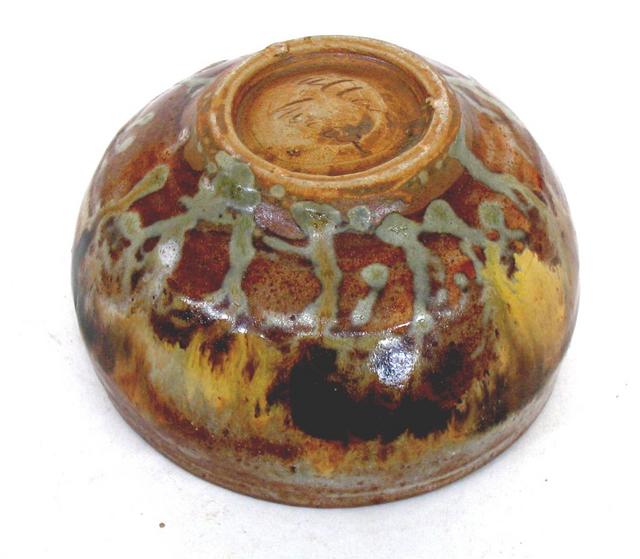 Opening a kiln always yields surprises. I prefer the base of this pot. It is a chawan, for ceremonial tea, but will no doubt be used for some other purpose. The pot was over-glazed with an ash glaze, which form the characteristic flow effect |