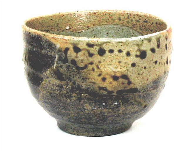 A new series of tea-bowl shapes. Thery are always intriguing to make, bearing in mind the philosophy behind their use. This is quite small, about 10 cms. The bowl expresses a new type of firing, using both gas and charcoal. |