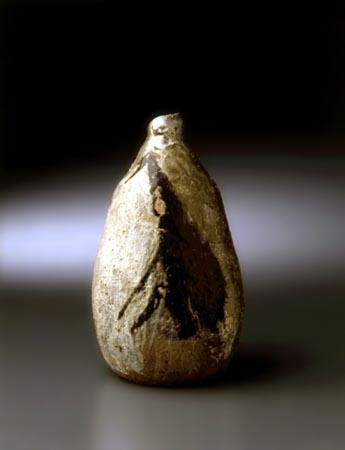 Titled 'Baobab' 20 cms h., this pot was made in 1962, at Tarragindi in Brisbane. It was inspired by the Aborigines who lived in the northern part of Australia. The artists from this particular tribe used the seeds of the Baobab tree as a form on which to carve or paint. It is a mid-range firing. |