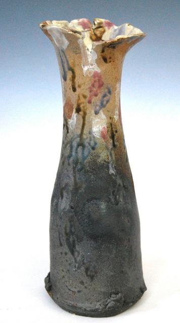 Stoneware, 32 cms. This pot was fired in a gas-fired kiln designed to allow solid fuel to be added. I can envisage the next steps to be taken with future pots.