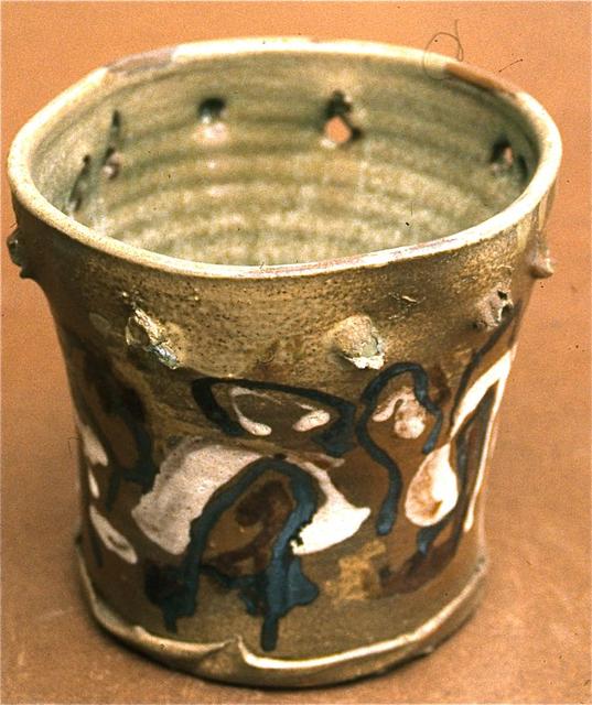 I still own this pot. It is about 20cms high. I exhibited it twice but it didn't find a home.