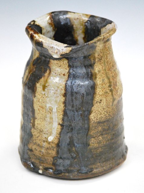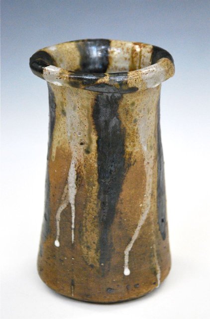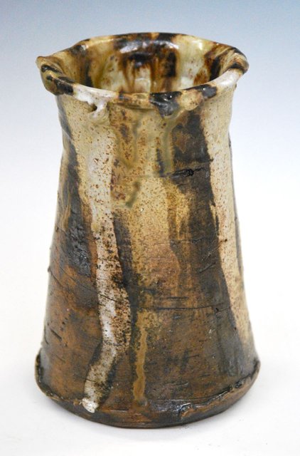Small vase. 16 cms, stoneware. 2013 mixed glaze/oxide marks and ash glaze. |