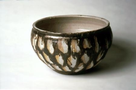 The decoration on this bowl has an avian reference. I called it 'Goshawk.' Made in 1990,it is 20.5 by 35 cms. Stoneware, it was made at Summertown, South Australia and is now part of the collection of the Art Gallery of Western Australia._photo, Greg Woodward AGWA. |