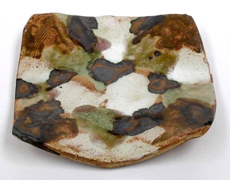 A 'kaiseki' dish. This one is free-form in shape and would, I think, be more suitable in a less formal occasion. Free-form shapes are not unusual in Japan, and especially so in the Oribe tradition which follows the design taste of Furata no Oribe. |
