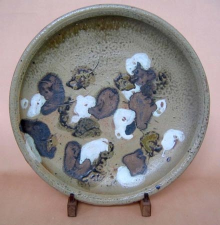 Platter, made at Summertown in the mid 90's. It is stoneware with oxide decorations and ash glaze. 48 cms diam. |