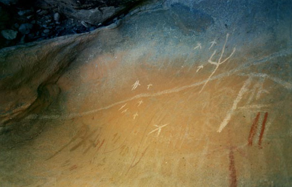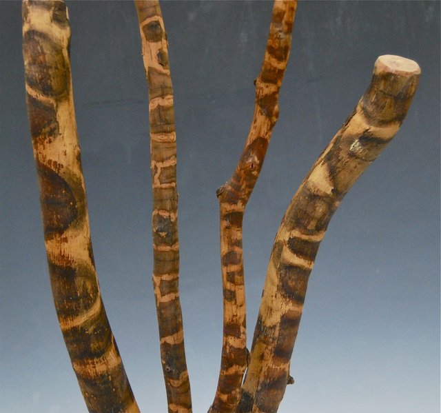 People ask where does inspiration come from. I live in suburban Adelaide and these are 'droppings' from a Lemon-scented gum tree. When the bark is shed each year, around November, smaller branches seem not to shed bark but the bark shrinks as it loses moisture and fungus invades and stains the wood. People often ask whether they were painted by aboriginal people and are surprised when I suggest that this sort of natural happening might be just one of the sources of the Aborigines incredible and often brilliant visual vocabulary. 2013