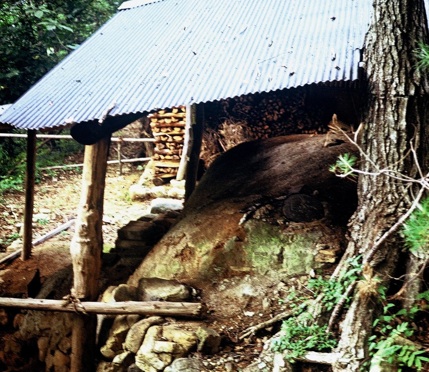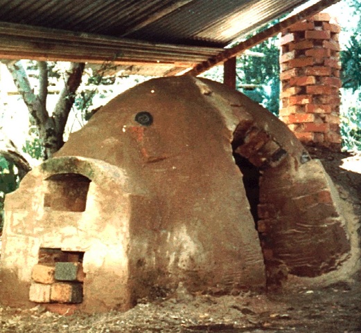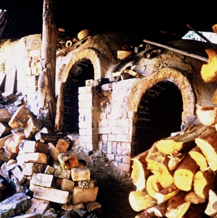 This kiln was built and used at Summertown from the late 1970's until its demolition. It is loosely referred to as an 'Anagama.' It is said that the first 'anagama' in Japan came via Korea in the 5th C. Japan has many historic kiln sites and many of the original 'anagama' were literally little more than enlarged 'rabbit burrows' excavated into sloping mounds, or hills. Over time they became more sophisticated, and now, in many different forms, can be found all over the potting world. They were (and mostly are) wood-fired, but this one at Summertown was fired with both gas and wood.