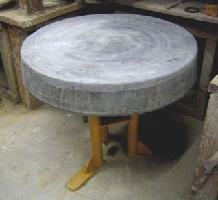 The wheel-head was first used as a heavy kick-plate for a 'kick wheel' made by a friend in Queensland. We altered the design so that the kick-base became the wheel head for quite low hand-wheels which I had sent to South Australia. Since then, over thirty years, it has evolved even further through the creative skill of an engineering friend, Mal Mead to become the only wheel I feel comfortable using.It is an 'intimate' wheel to use and I feel a closer part of the whole process.