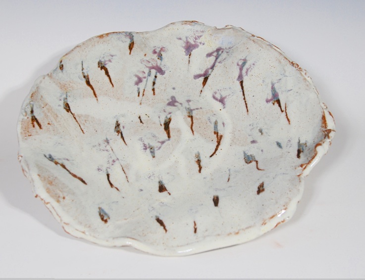 This free-form platter has a shino-type glaze and is 34 by 34 cms. All these final forms were made in 2016